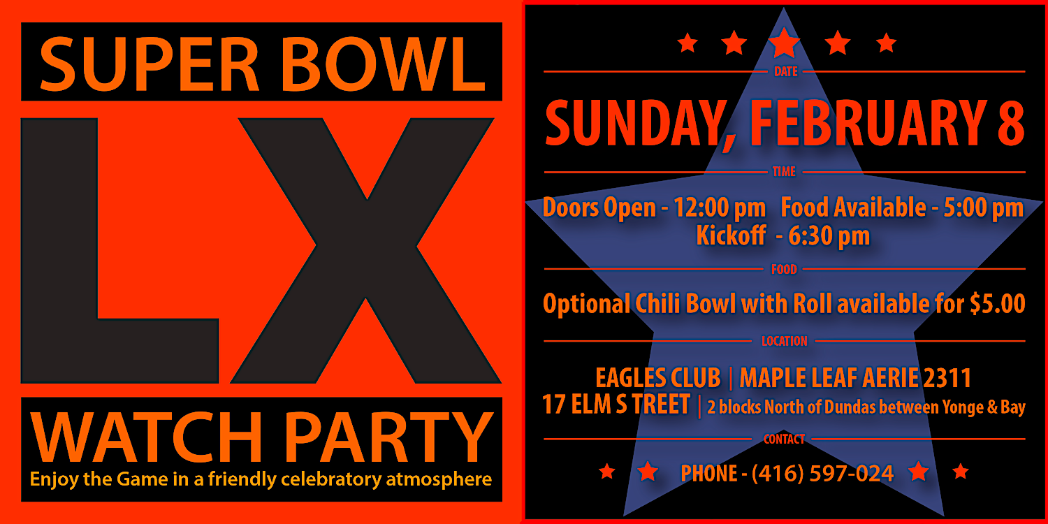 Sunday, February 1 - All are welcome. 4 TV screens available to show different sporting events. A friendly Poker or Euchre game normally gets organized between 3 and 4 PM. for those interested in playing. Free Pool. Shuffleboard $1 a game.